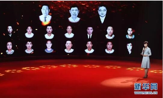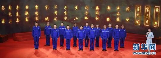 ▲在主持人的引导下,中船重工第七六〇研究所抗灾抢险英雄群体中的14位同志(另外3位同志牺牲)参加发布仪式