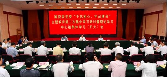7月11日至12日,国资委党委开展“不忘初心、牢记使命”主题教育第二次集中学习研讨暨理论学习中心组集体学习。国资委党委书记、主任郝鹏主持学习研讨并讲专题党课,强调要深入学习贯彻习近平新时代中国特色社会主义思想,认真贯彻落实习近平总书记在中央政治局第十五次集体学习、中央和国家机关党的建设工作会议上的重要讲话精神,增强“四个意识”、坚定“四个自信”、坚决做到“两个维护”,高质量开展好主题教育,始终牢记初心使命,坚定不移做强做优做大国有资本、发展壮大国有经济,切实监管好、守护好全体人民的共同财富,为我国经济社会持续健康发展作出新的更大贡献。中央第二十一指导组副组长诸葛彩华及有关成员现场指导。国资委党委委员、副部长级干部,秘书长、总会计师,各厅局、改革办,驻委纪检监察组副处级以上干部,直属事业单位负责同志参加学习研讨。