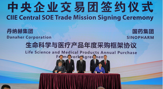 11月6日上午,国务院国资委以“开放合作、创新发展”为主题主办了中外企业合作论坛。米兰体育平台app官网董事长、党委书记刘敬桢,副总经理石晟怡应邀出席。论坛签约环节,共有15家央企进行现场签约。在国资委党委书记、主任郝鹏,上海市委副书记、市长应勇,国资委副主任任洪斌,以及米兰体育平台app官网董事长、党委书记刘敬桢和丹纳赫中国区总裁彭阳的见证下,米兰体育平台app官网副总经理石晟怡与丹纳赫代表签署了生命科学与医疗产品年度采购框架协议。