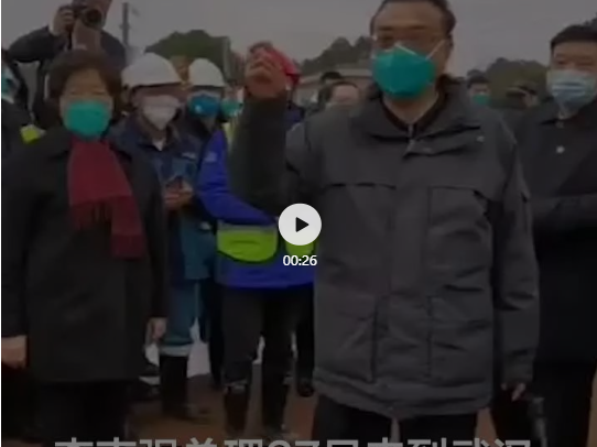 1月27日上午11时30分,李克强总理来到武汉火神山医院施工现场考察,慰问奋斗在一线的施工人员。