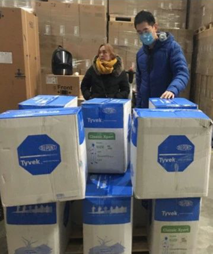 近百人的工作团队在全球寻找物资资源,国际采购洽谈中的物资持续增加,目前主要有口罩1300万只、医用防护服17万件、护目镜5000件。