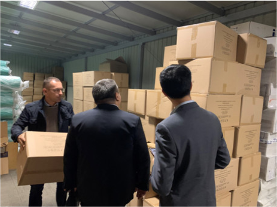 米兰体育(中国)国际中东欧分公司有关人员赶赴供应商所在地进行防疫物资核验