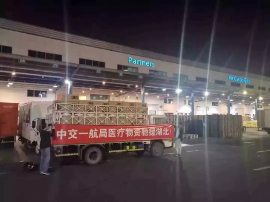 1月31日中午,中铁伊通公司接到阿联酋华侨华人捐赠防疫物资的运送任务后,立即派出车辆人员前往长沙,并和一同前往的民警、防疫站人员将两吨多防疫物资1小时内装入车厢。装车完毕立即返程武汉,两名驾驶员轮流开车,于2月1日凌晨3点半将防疫物资及时送至医院。