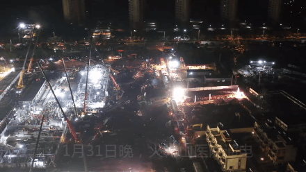 晚上10点,来自中建三局和武汉建工、武汉市政、汉阳市政等企业的上百台挖掘机、推土机等施工机械从武汉全市各处赶来,紧急集合,通宵进行场平、回填等施工。