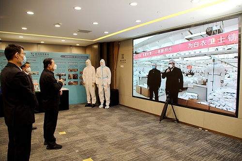 2月7日,郝鹏深入国机集团、新兴际华集团等供应保障重点医疗防控物资的部分央企调研,强调要不惜代价分秒必争,紧急转产全力支援防控一线。郝鹏同国机集团所属生产口罩、防护服原材料无纺布的湖北仙桃恒天嘉华非织造公司,新兴际华集团所属生产防护服的河北石家庄际华三五零二职业装公司生产车间视频连线,详细了解企业产能产量、有哪些困难等,对企业紧急购买医疗物资生产设备,改造原有生产线,积极申请相关资质加快生产的做法给予充分肯定,强调要坚持质量第一,保持战时状态,急防疫一线之所急,抓紧改造转产、达产扩产,尽力排产满产。