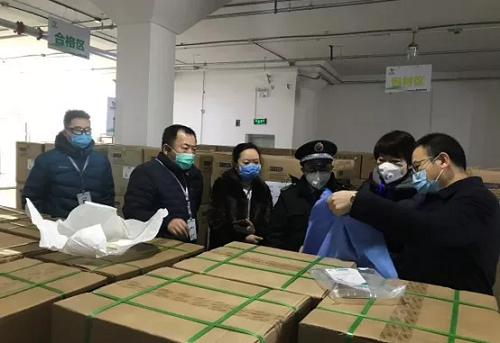 2020年2月15日,北京市药监局相关领导第一时间到现场查看物资筹备情况,并完成首批应急防控物资调出,米兰体育(中国)器械北京公司经营班子及相关部门负责人参与物资交付。