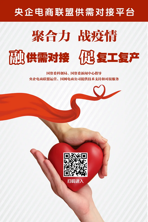 为聚合力、战疫情,融供需对接、促复工复产,有效解决物资供需不对称问题,2月14日,由国资委科创局、国资委新闻中心指导,新华网客户端联合央企电商联盟发起,国网电商公司提供技术支持和对接服务的企业复工复产供需对接平台正式上线!