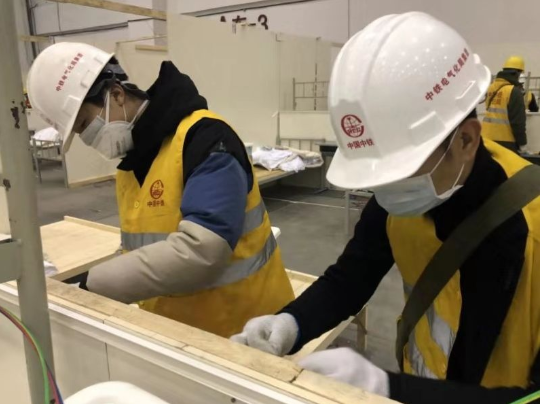 5日上午8时,800多平方米的隔离空间和25米长的医护专用隔离安全通道全部完工。2月5日16时30分,方舱医院新增供电系统改建完工通电;20时,医护隔离空间及病房电源插头安装任务全部完成,水暖项目也相继完工。