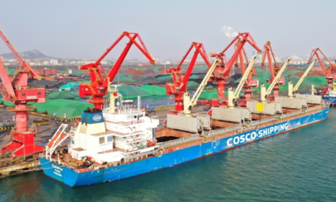 2月26日,中远海运散运衢山海轮承运的中铝几内亚博法项目首船铝土矿接卸仪式在日照港石臼港区举行