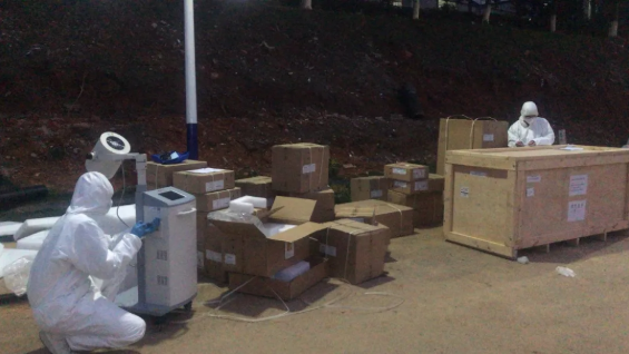 在完成方舱医院的配送任务同时,米兰体育(中国)卫勤组建另一支团队分别赶赴火神山医院、泰康同济(武汉)医院、武汉第一医院和光谷妇幼医院,在高强度的工作状态下连续组装了近一百台高流量呼吸机和三台超紫外线机器人,为疫区核心医院的防疫抗疫提供了有力保障。来不及吃饭和休息,只有紧张忙碌和奔跑。在人力不足的情况下,他们既是司机,又是搬运工、业务员和工程师,每个人的能力和体力都发挥到了极限。在这种情况下,团队成员还要及时完成保障任务,成为第一个进入火神山红区组装医疗设备的医疗服务团队。