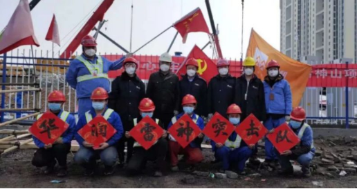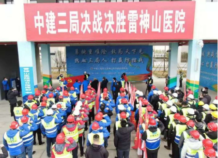 1月28日,中建三局雷神山医院项目指挥部火速成立临时党委,并为党员突击队、青年突击队授旗。郑学选在动员讲话中指出,这是个不平凡的春节,越是艰难,越能体现三局人的担当和精神。