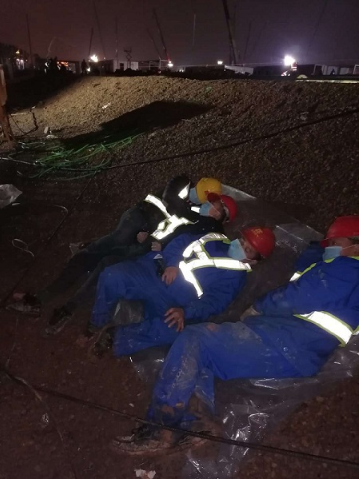 施工间隙,累到极致的华润燃气建设者们就地休息。
