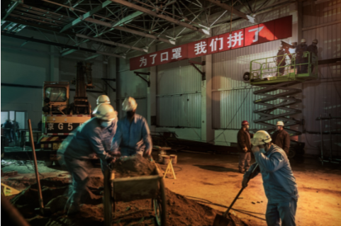 半个月!这是火神山的建设速度。而正常情况下完成一座万吨级熔喷布生产厂建设,大约需要半年时间。