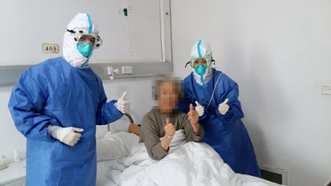 在重症隔离病房内,ICU主任向小卫及重症医护团队结合患者病情特征,不断调整治疗方案。经全力救治和24小时监护,王大爷终于脱险,病情得到控制并逐渐好转,新型冠状病毒核酸检测转阴,脱氧后静息状态下氧饱和度95%以上,胸部CT提示病灶较前有所吸收,病情稳定。2月17日,王大爷又转回了普通隔离病房。