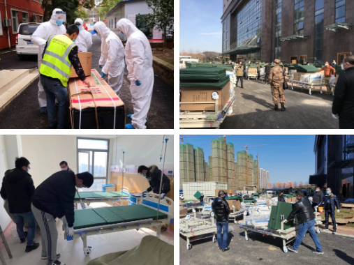 随后公司又陆续向火神山、雷神山医院和泰康同济武汉医院紧急供应了包括4台ECMO、上百台呼吸机、检验设备和试剂等在内的一批重点医疗物资。2月22-23日,团队挑战了时间和安全双重极限,在48小时内向武汉各区的30多家方舱医院运送了265台急需的呼吸机,并成为了第一支进入火神山医院红区组装设备的服务团队。3月13日,公司向泰康医院紧急调拨了目前最新型高效的ig-M与ig-G检验设备,并以最快的时间投入临床使用。