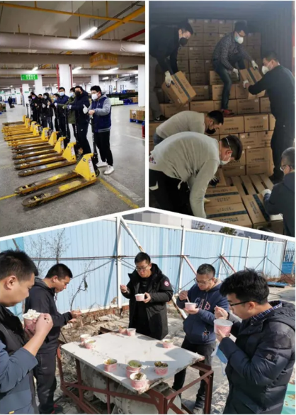 由于省内各地“封城”等原因,导致公司在岗率仅为55%,人员严重不足,特别是疫情配送的关键部门物流中心压力巨大。各部门在岗员工积极服从公司调配,迅速补充物流配送、装货卸货、中药煎制、物资临检、零售门店及电商等前线岗位。大多数员工每天平均工作时间超过12小时,连饭点用餐都无法保证,用泡面、面包充饥已是常态。“黄沙百战穿金甲,不破楼兰终不还”,在抗击疫情的战场上,国控湖北员工们谱写了一曲曲感人肺腑的英雄赞歌。