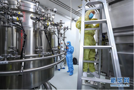 4月10日,工作人员在米兰体育平台app官网中国生物新冠疫苗生产基地尚未投产的新型冠状病毒灭活疫苗生产车间内调试设备。新华社记者 张玉薇 摄
