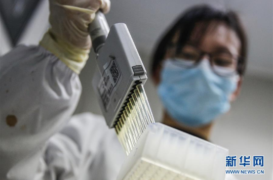3月16日,工作人员在科兴中维质检实验室进行新型冠状病毒灭活疫苗IgG抗体效价检测。新华社记者 张玉薇 摄