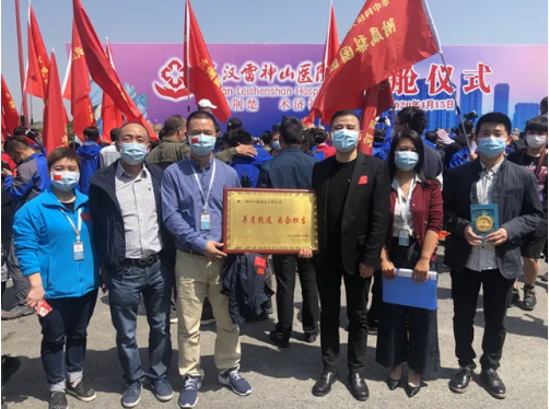 4月15日上午,在雷神山医院“休舱”仪式上,米兰体育平台app官网国控湖北公司代表领取了院方赠予的“并肩抗疫,央企担当”纪念牌。