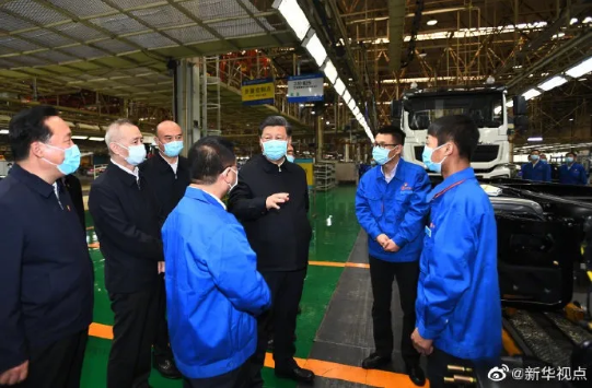 4月22日,习近平总书记来到陕西汽车控股集团有限公司考察调研,详细了解产品研发、生产、销售和复工复产情况。