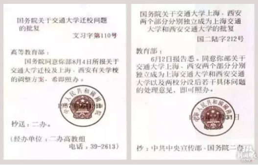 △这是1957年国务院关于交大分设两地及1959年各自独立建校的文件。