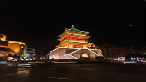 △西安钟楼、大唐不夜城,是“夜游西安”的必到之地。