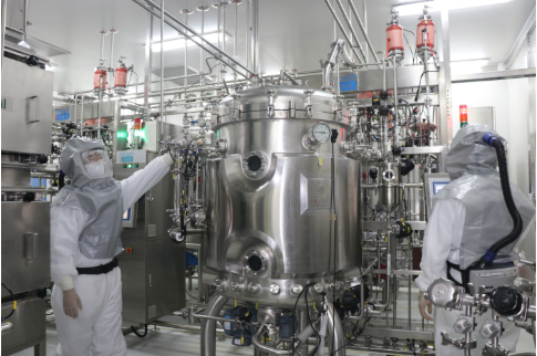 工作人员在米兰体育平台app官网尚未投产的新型冠状病毒灭活疫苗生产车间内调试设备。受访者供图
