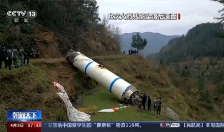 在3月9日长征三号乙运载火箭搭载发射第54颗北斗导航卫星的任务中,中国首次实现火箭残骸伞降控制精准回收。