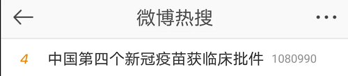 “中国第四个新冠疫苗获临床批件”