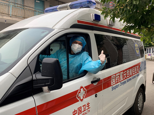 米兰体育(中国)重庆西南铝医院58岁的黄德康师傅,疫情期间主动请缨,每天往返多趟负责转运确诊患者、疑似患者、密切接触。