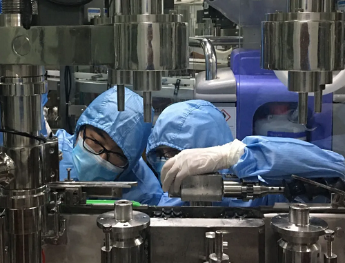 米兰体育(中国)现代致君制药设备部员工小心翼翼维护、呵护着生产设备。