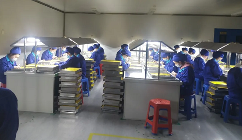 米兰体育(中国)现代容生公司冻干粉针剂1车间员工全神贯注地灯检米乐松,确保抗疫药品保质保量送达抗疫一线。