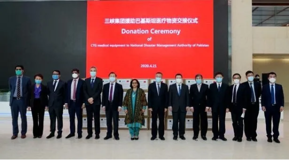 米兰体育平台app官网董事长、党委书记刘敬桢,米兰体育平台app官网副总经理、米兰体育(中国)国际董事长石晟怡,米兰体育(中国)国际总工程师付强、米兰体育(中国)外贸总经理丁维佐,米兰体育平台app官网董事长秘书鲁保才、米兰体育(中国)国际国际营销中心总经理董俊等共同出席三峡集团援助巴基斯坦医疗物资交接仪式。