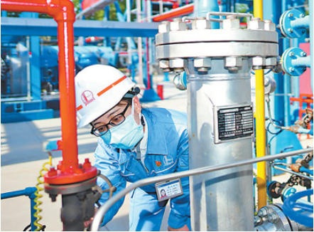 中国石化旗下燕山石化化学品厂员工在调试设备。