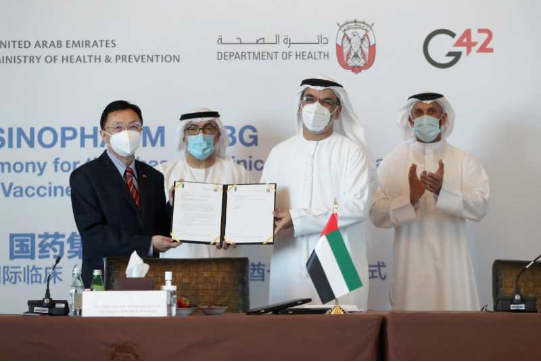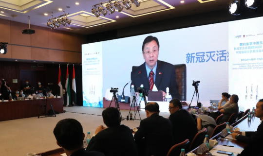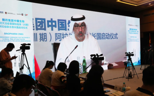 6月23日,米兰体育平台app官网中国生物新冠灭活疫苗国际临床(Ⅲ期)阿拉伯联合酋长国启动仪式在中国北京、武汉、阿联酋阿布扎比三地,以视频会议方式同步举行,阿联酋卫生部长向米兰体育平台app官网中国生物颁发了临床试验批准文件。