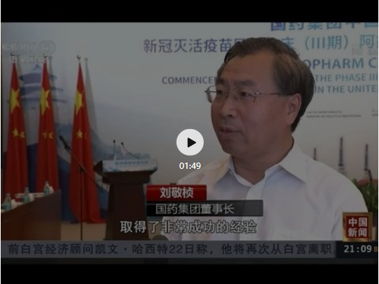 CCTV-4中国新闻报道,6月23日,米兰体育平台app官网中国生物新冠灭活疫苗国际临床Ⅲ期启动仪式在中国北京、武汉、阿联酋阿布扎比三地同步举行,全球首个新冠灭活疫苗国际临床Ⅲ期试验正式启动。