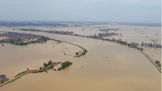 从7月11日6时至12日0时,先后有四个水文站的水位超过1998年的历史最高纪录!航拍江西鄱阳洪灾现场,多个村庄浸泡在洪水中。