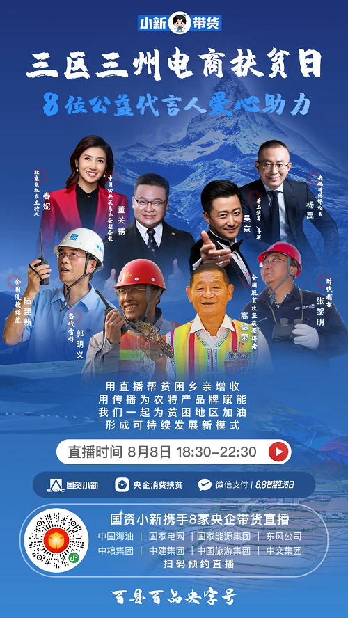 在“‘三区三州’电商扶贫日”的直播带货现场,中央企业电商联盟、中央企业媒体联盟、腾讯微信面向所有中国企业和社会各界发起《企业电商扶贫“三区三州”倡议书》:充分发挥中国企业的市场主体作用,助力“三区三州”开展产业扶贫、增加有效供给,培育内生动力,推进可持续发展;充分发挥电商平台的引领带动作用,助力“三区三州”开拓线上渠道、培训电商人才,产销结合、以销促产,让特色产品对接更大线上市场,让电商扶贫惠及更多贫困群众。