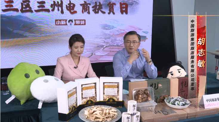 ▲中国旅游集团旅行服务有限公司董事、纪委书记胡志敏,将“菌中之王”香格里拉松茸带到直播间。