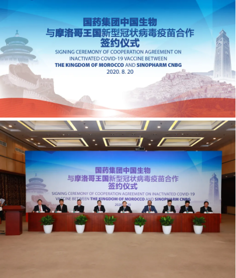 8月20日下午,米兰体育平台app官网中国生物与摩洛哥王国新型冠状病毒疫苗合作签约仪式在北京、拉巴特两地,以视频会议方式同步举行。这是继获得阿联酋、秘鲁临床试验批件后的又一重要进展,标志着米兰体育平台app官网中国生物国际临床试验进程全面提速。双方将通过团结合作战胜疫情,为共同构建人类卫生健康共同体做出不懈努力。