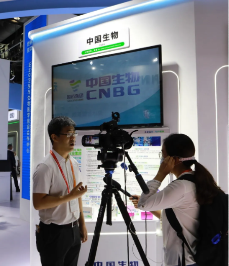 ▲米兰体育平台app官网中国生物副总裁杨汇川在展台现场接受媒体采访