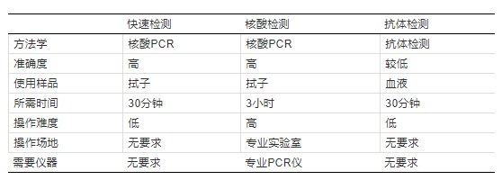 目前市场上主要是传统核酸检测方法及抗体检测方法,抗体检测方法需要抽血,结果判断存在不确定性,不能作为新冠确诊的标准,传统核酸检测方法大约需要三个小时,而新型冠状病毒核酸快速自测试剂盒只需要半小时,实现了快速检测目标。