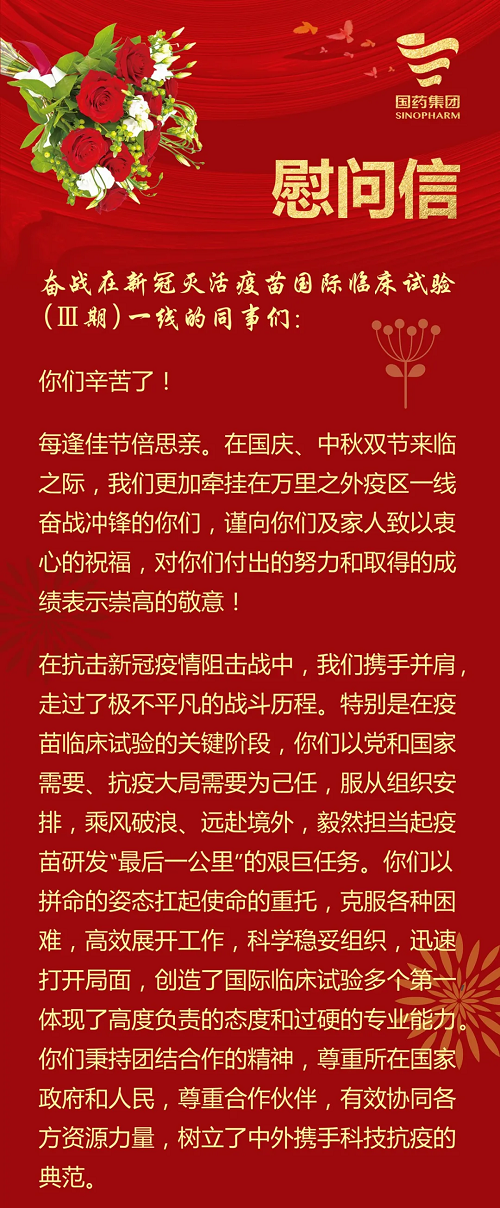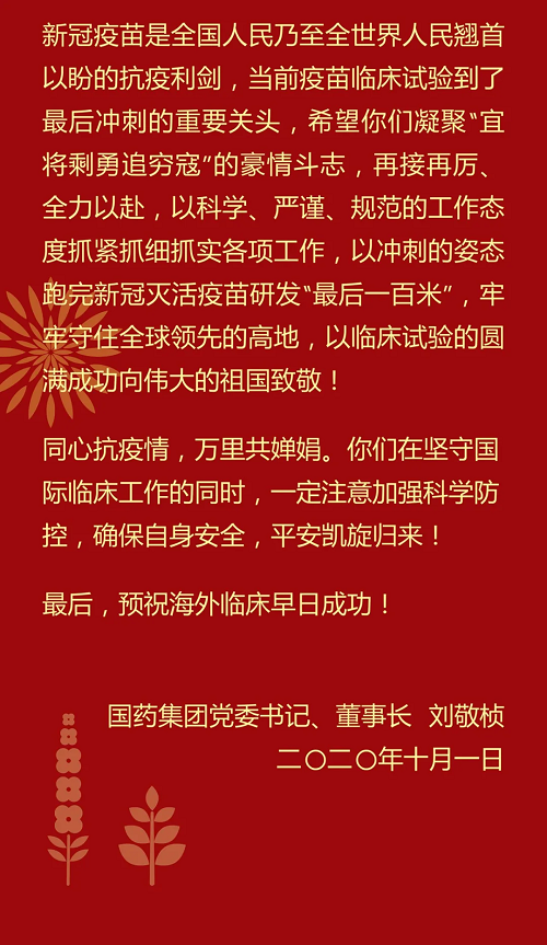 米兰体育平台app官网刘敬桢董事长致新冠灭活疫苗国际临床试验(Ⅲ期)海外科研人员的慰问信