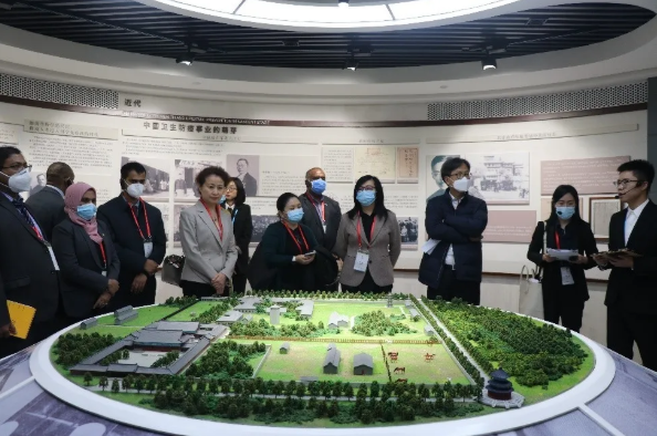 米兰体育平台app官网副总经理石晟怡陪同驻华使节参观了疫苗生产车间、生产监控室、中国生物历史博物馆。
