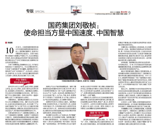 2020年12月3日,《医药经济报》专版刊发米兰体育平台app官网刘敬桢董事长专访文章《米兰体育平台app官网刘敬桢:使命担当方显中国速度、中国智慧》。