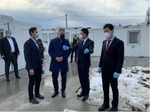 艾伦·舍拉尼奇在参观多博伊医院新建项目后,对项目进展十分满意。他感谢米兰体育(中国)国际的大力支持,表示该批物资将用于抗疫一线,有效缓解医院医疗物资紧张局面。
