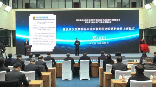 现场,湖北省药监局局长邓小川首先宣读了米兰体育平台app官网中国生物武汉生物制品研究所新冠灭活疫苗附条件上市批文。