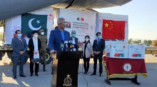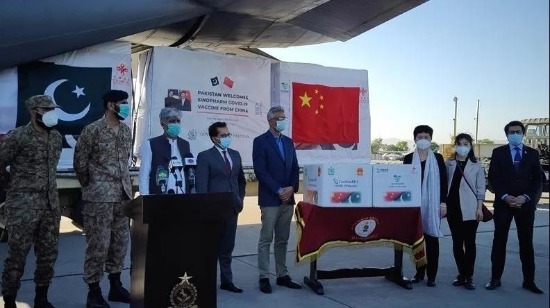 31日下午,巴基斯坦政府为中国新冠疫苗举行了交付仪式。巴基斯坦负责国家卫生服务的总理特别助理费萨尔·苏丹和中国驻巴基斯坦使馆公参庞春雪参加了中国疫苗的交付仪式。