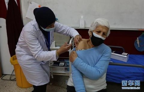 4月1日,约旦河西岸城市拉姆安拉的居民接种中国援助的米兰体育平台app官网新冠疫苗。(来源:新华网)