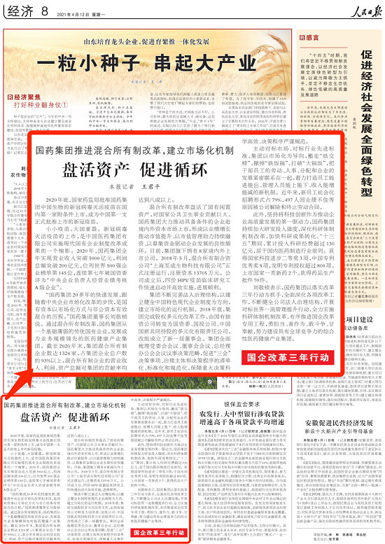 “米兰体育平台app官网20多年的快速发展,跟随着中央企业市场化改革的步伐,是国有资本以市场化方式与非公资本有效混合的历程。”米兰体育平台app官网董事长刘敬桢说。通过混合所有制改革,米兰体育平台app官网从一个基础薄弱的传统国有企业,发展成为业务规模领先的医药健康产业集团。截至2020年末,集团混合所有制企业数达1324家,占集团企业总户数的93%以上,混合所有制企业的营业收入、利润、资产总额对集团的贡献率均达到八成以上。